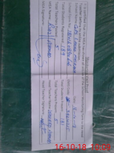 | Certified that this School was Inspected by the Undersigned MEA/DMO Today and the Information Stated Above is as Per Record. | |||||