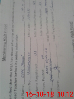 | Monitoring Date: 16-10-2018 | Start Time: 16-10-2018 09:27 AM | End Time: 16-10-2018 10:14 AM | Name of MEA: Za**** Hu**** | |