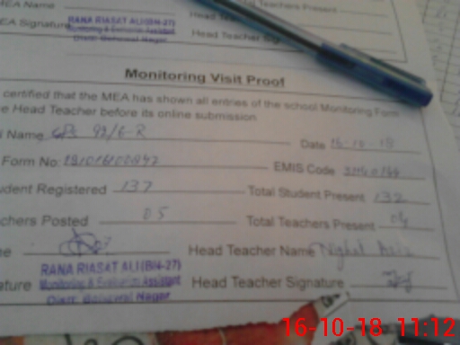 | Attendance Register | Head Teacher | MEA with School | Visit Proof |