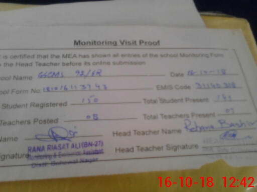 | Certified that this School was Inspected by the Undersigned MEA/DMO Today and the Information Stated Above is as Per Record. | |||||