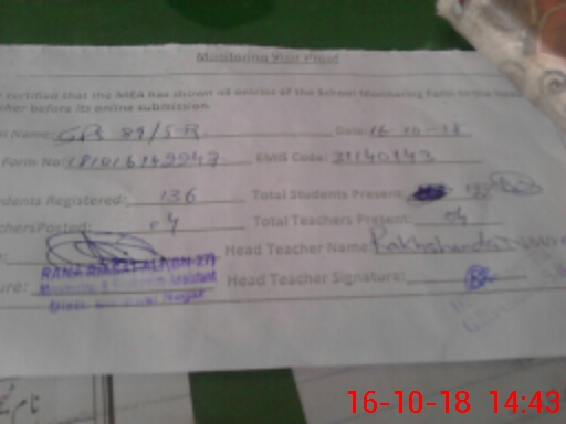 | EMIS Code: 31140143 | Name of School: GPS CHAK NO 89/5-R | |||
