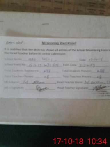 | Certified that this School was Inspected by the Undersigned MEA/DMO Today and the Information Stated Above is as Per Record. | |||||