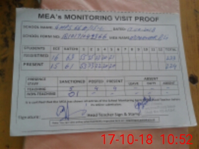 | Attendance Register | Head Teacher | MEA with School | Visit Proof |