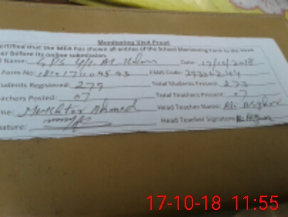 | Certified that this School was Inspected by the Undersigned MEA/DMO Today and the Information Stated Above is as Per Record. | |||||