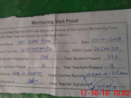 | EMIS Code: 31150030 | Name of School: GHS SHEW PURA | |||