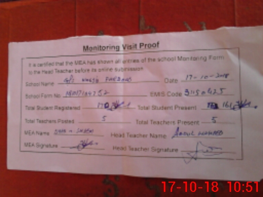 | EMIS Code: 31150425 | Name of School: GPS MASJID FARDOUS | |||