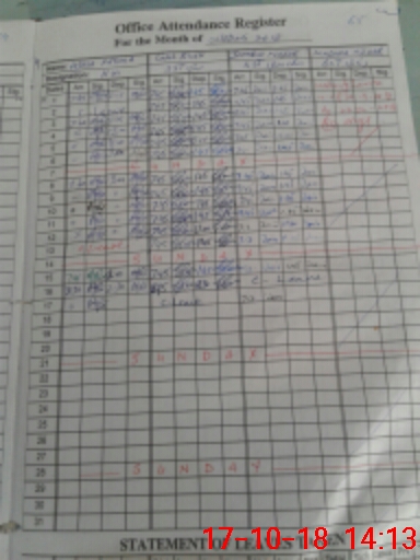 | CNIC | Full Name | Designation | R/C | Absence During Last Calender Month |