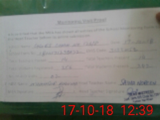 | Attendance Register | Head Teacher | MEA with School | Visit Proof |