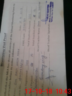 | Certified that this School was Inspected by the Undersigned MEA/DMO Today and the Information Stated Above is as Per Record. | |||||