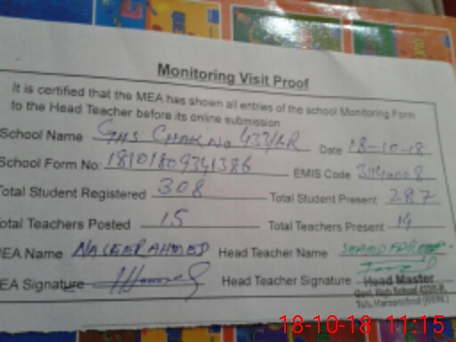 | EMIS Code: 31140008 | Name of School: GHS CHAK NO. 433/6-R | |||