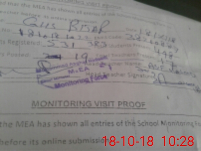 | Certified that this School was Inspected by the Undersigned MEA/DMO Today and the Information Stated Above is as Per Record. | |||||