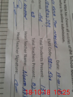 | Certified that this School was Inspected by the Undersigned MEA/DMO Today and the Information Stated Above is as Per Record. | |||||