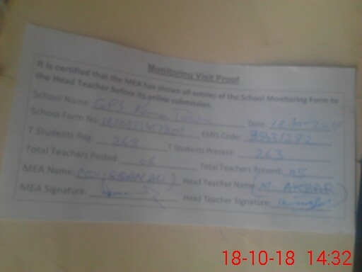 | Certified that this School was Inspected by the Undersigned MEA/DMO Today and the Information Stated Above is as Per Record. | |||||