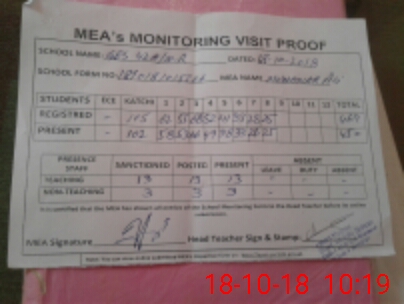 | Attendance Register | Head Teacher | MEA with School | Visit Proof |