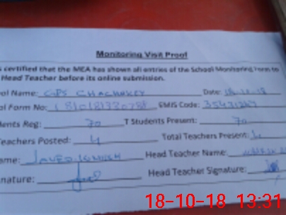 | Certified that this School was Inspected by the Undersigned MEA/DMO Today and the Information Stated Above is as Per Record. | |||||