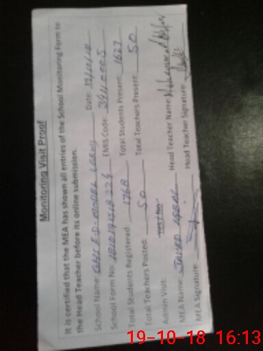 | Certified that this School was Inspected by the Undersigned MEA/DMO Today and the Information Stated Above is as Per Record. | |||||