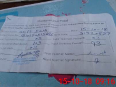 | Attendance Register | Head Teacher | MEA with School | Visit Proof |