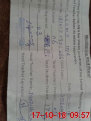 | Attendance Register | Head Teacher | MEA with School | Visit Proof |
