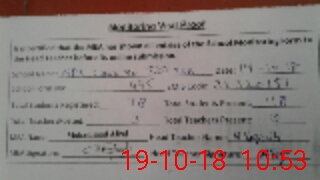 | Monitoring Date: 19-10-2018 | Start Time: 19-10-2018 10:20 AM | End Time: 19-10-2018 10:58 AM | Name of MEA: Mu**** Af**** | |