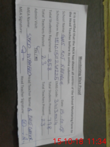 | Certified that this School was Inspected by the Undersigned MEA/DMO Today and the Information Stated Above is as Per Record. | |||||