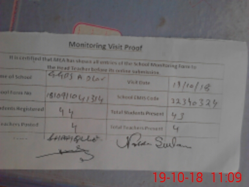 | Certified that this School was Inspected by the Undersigned MEA/DMO Today and the Information Stated Above is as Per Record. | |||||