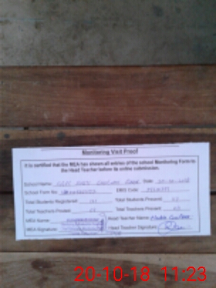 | Attendance Register | Head Teacher | MEA with School | Visit Proof |