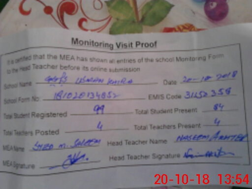 | EMIS Code: 31150358 | Name of School: GGPS USMAN KHARA | |||
