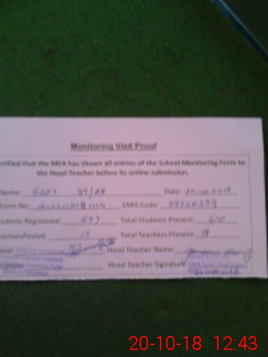| Certified that this School was Inspected by the Undersigned MEA/DMO Today and the Information Stated Above is as Per Record. | |||||
