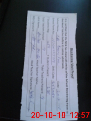 | Attendance Register | Head Teacher | MEA with School | Visit Proof |