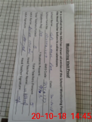 | Attendance Register | Head Teacher | MEA with School | Visit Proof |