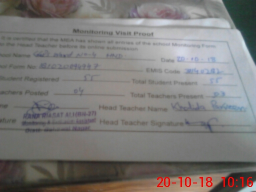 | EMIS Code: 31140282 | Name of School: GGPS WARD NO. 4 HAROON ABAD | |||