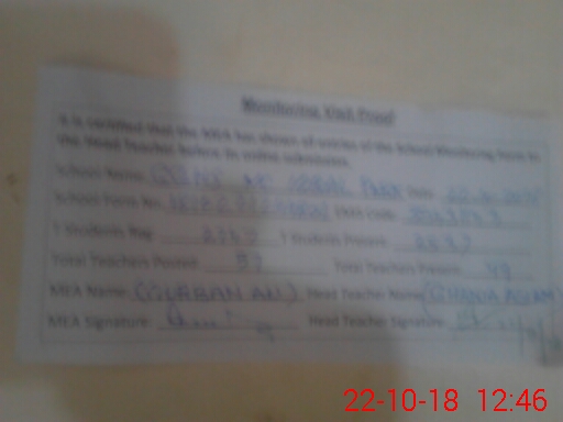 | Attendance Register | Head Teacher | MEA with School | Visit Proof |