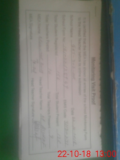 | Certified that this School was Inspected by the Undersigned MEA/DMO Today and the Information Stated Above is as Per Record. | |||||