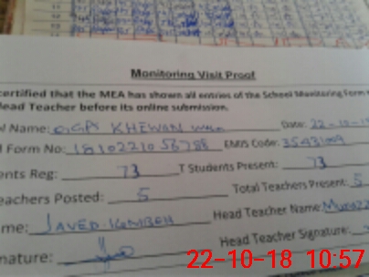 | EMIS Code: 35431009 | Name of School: GGPS KHEWAN WALA | |||