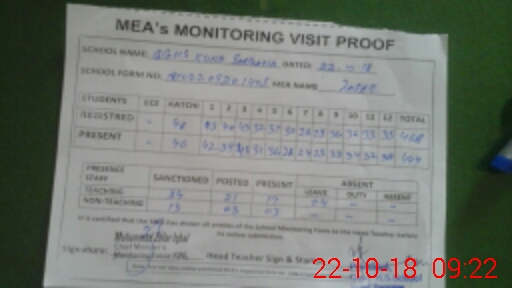 | Certified that this School was Inspected by the Undersigned MEA/DMO Today and the Information Stated Above is as Per Record. | |||||