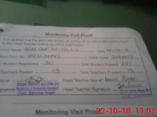 | Certified that this School was Inspected by the Undersigned MEA/DMO Today and the Information Stated Above is as Per Record. | |||||