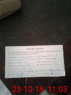 | Monitoring Date: 23-10-2018 | Start Time: 23-10-2018 10:28 AM | End Time: 23-10-2018 11:03 AM | Name of MEA: Sa**** Hu**** | |