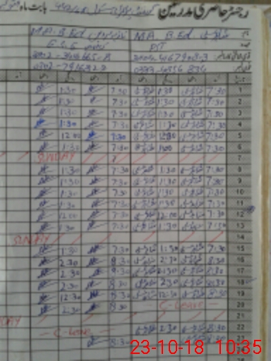 | CNIC | Full Name | Designation | R/C | Absence During Last Calender Month |