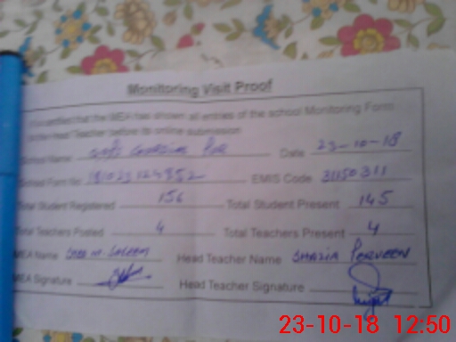 | Certified that this School was Inspected by the Undersigned MEA/DMO Today and the Information Stated Above is as Per Record. | |||||