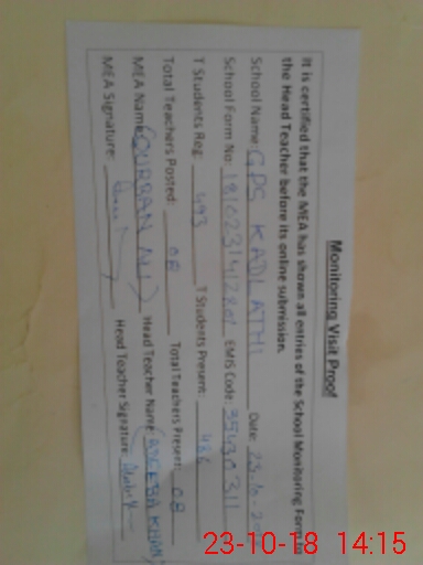 | Certified that this School was Inspected by the Undersigned MEA/DMO Today and the Information Stated Above is as Per Record. | |||||