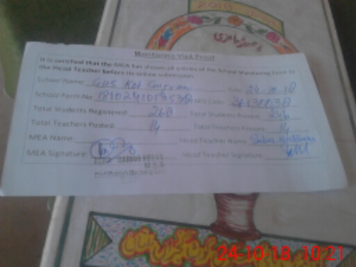 | EMIS Code: 36130038 | Name of School: GHS KOT GUJRAN MULTAN | |||