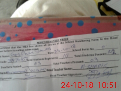 | Attendance Register | Head Teacher | MEA with School | Visit Proof |