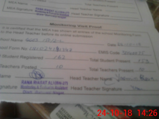 | Certified that this School was Inspected by the Undersigned MEA/DMO Today and the Information Stated Above is as Per Record. | |||||
