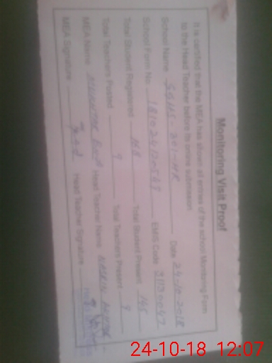 | Certified that this School was Inspected by the Undersigned MEA/DMO Today and the Information Stated Above is as Per Record. | |||||
