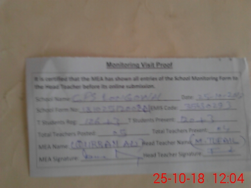 | Certified that this School was Inspected by the Undersigned MEA/DMO Today and the Information Stated Above is as Per Record. | |||||