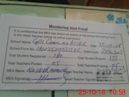 | Certified that this School was Inspected by the Undersigned MEA/DMO Today and the Information Stated Above is as Per Record. | |||||