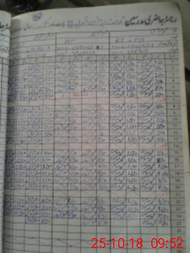 | CNIC | Full Name | Designation | R/C | Absence During Last Calender Month |