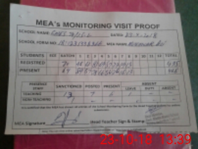 | Attendance Register | Head Teacher | MEA with School | Visit Proof |