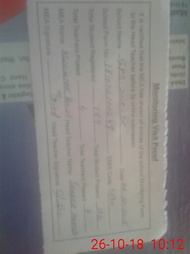 | Monitoring Date: 26-10-2018 | Start Time: 26-10-2018 09:06 AM | End Time: 26-10-2018 10:13 AM | Name of MEA: Mu**** ah**** BN**** 29 | |