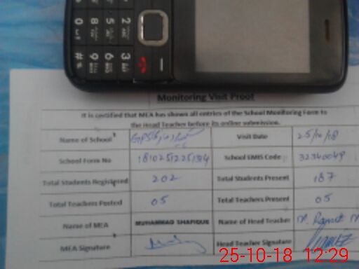 | Attendance Register | Head Teacher | MEA with School | Visit Proof |